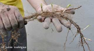 Así que a partir de una planta podemos ir ampliando nuestro cultivo sin hacer nada aunque si se quiere controlar o poner las plantas en otros sitios se pueden desenterrar. Se sacan los renuevos con la mayor cantidad posible de raíces finas y eliminando las raíces más viejas ya que no estarán activas para absorber nutrientes. Una vez sacados se colocan en tiestos con tierra y mantillo y los mantendremos en un lugar protegido del frío. En primavera cuando empiecen a aparecer las primeras hojas las plantaremos directamente en el huerto.